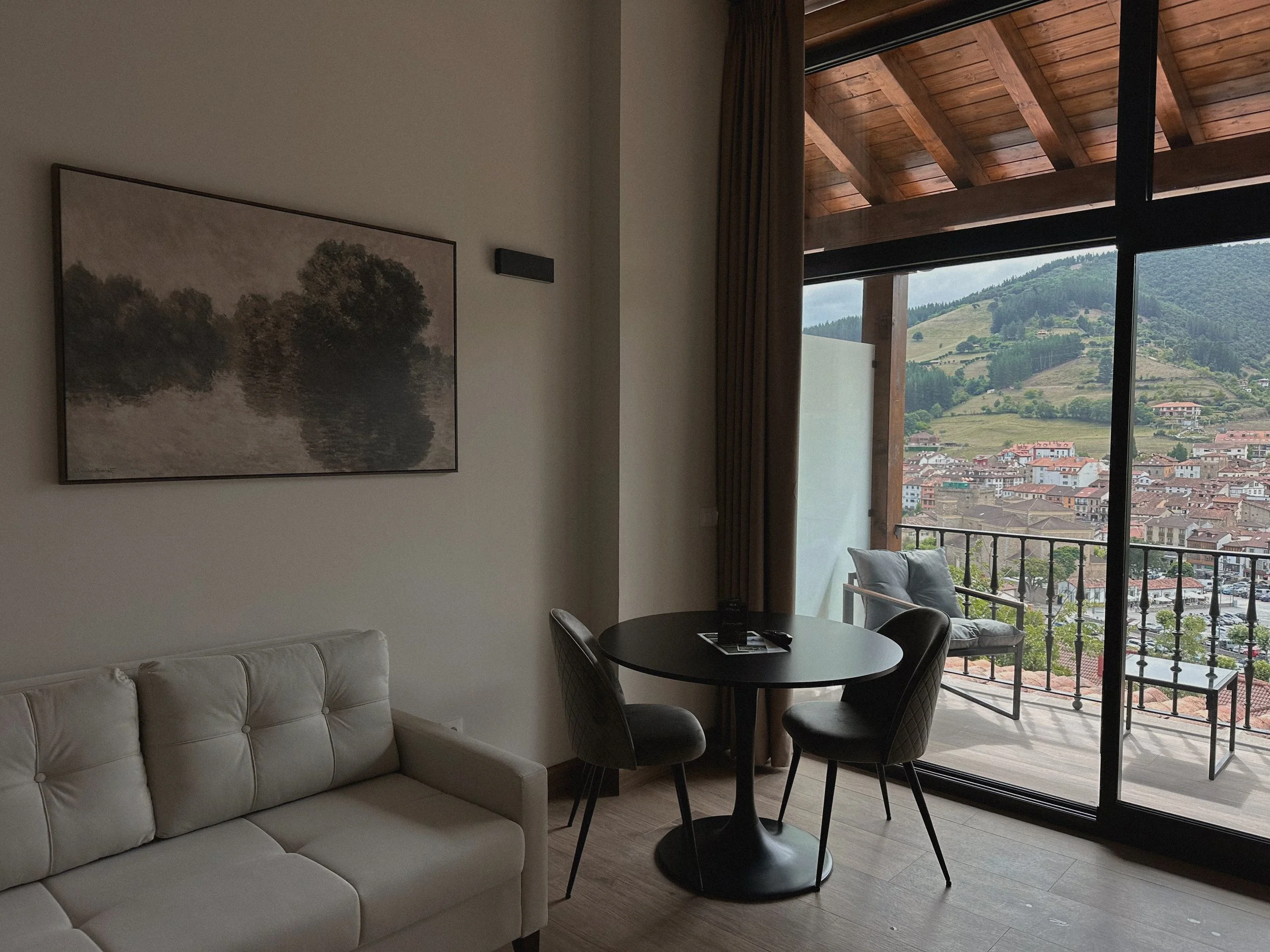 Diseñado para dos personas, el Dúplex La Solana combina amplitud, diseño y comodidad. Sus ventanales panorámicos permiten disfrutar de una conexión directa con el paisaje, y su balcón privado ofrece una de las mejores vistas al casco histórico y a las montañas cercanas.